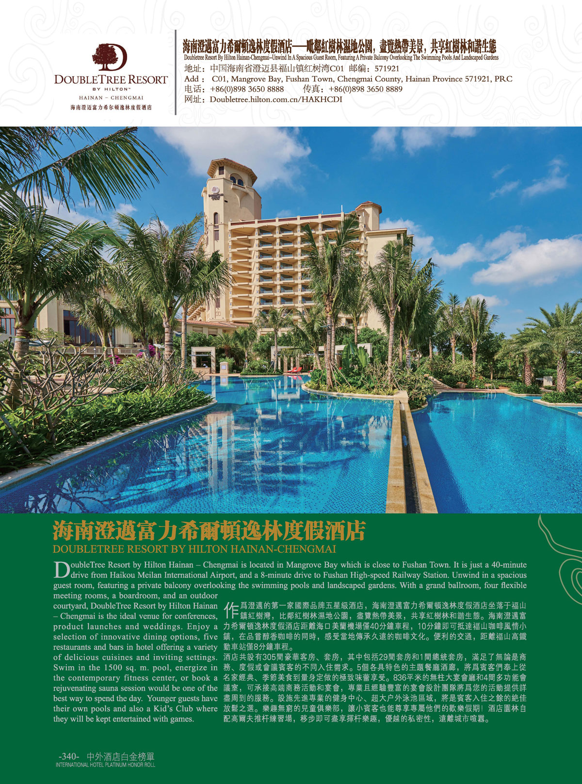 中外酒店十一届白金奖“中国最佳亲子酒店”海南澄迈富力希尔顿逸林度假酒店!