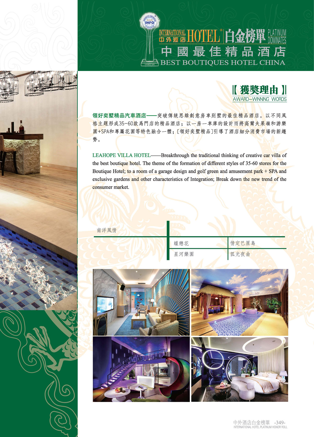 中外酒店十一届白金奖“中国最佳精品酒店”领好奕墅精品汽车酒店!