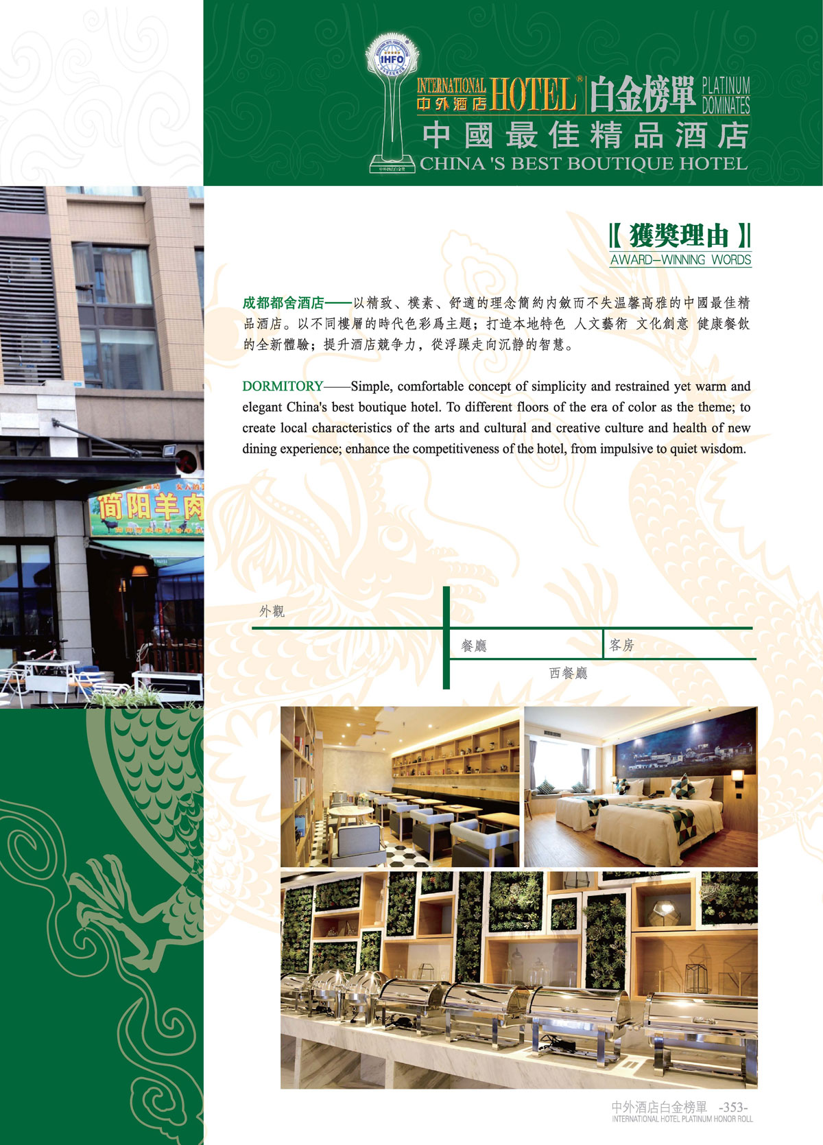 中外酒店十一届白金奖“最具投资潜力连锁品牌”成都都舍酒店!