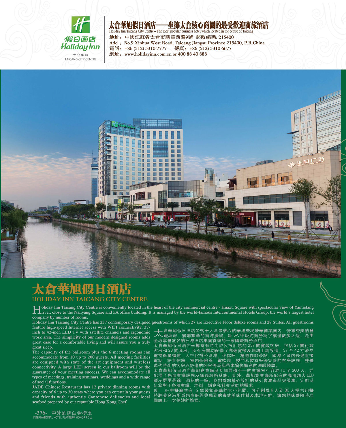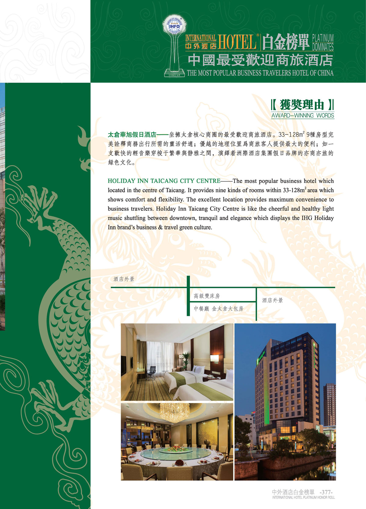 中外酒店十一届白金奖“中国最受欢迎商旅酒店”太仓华旭假日酒店!