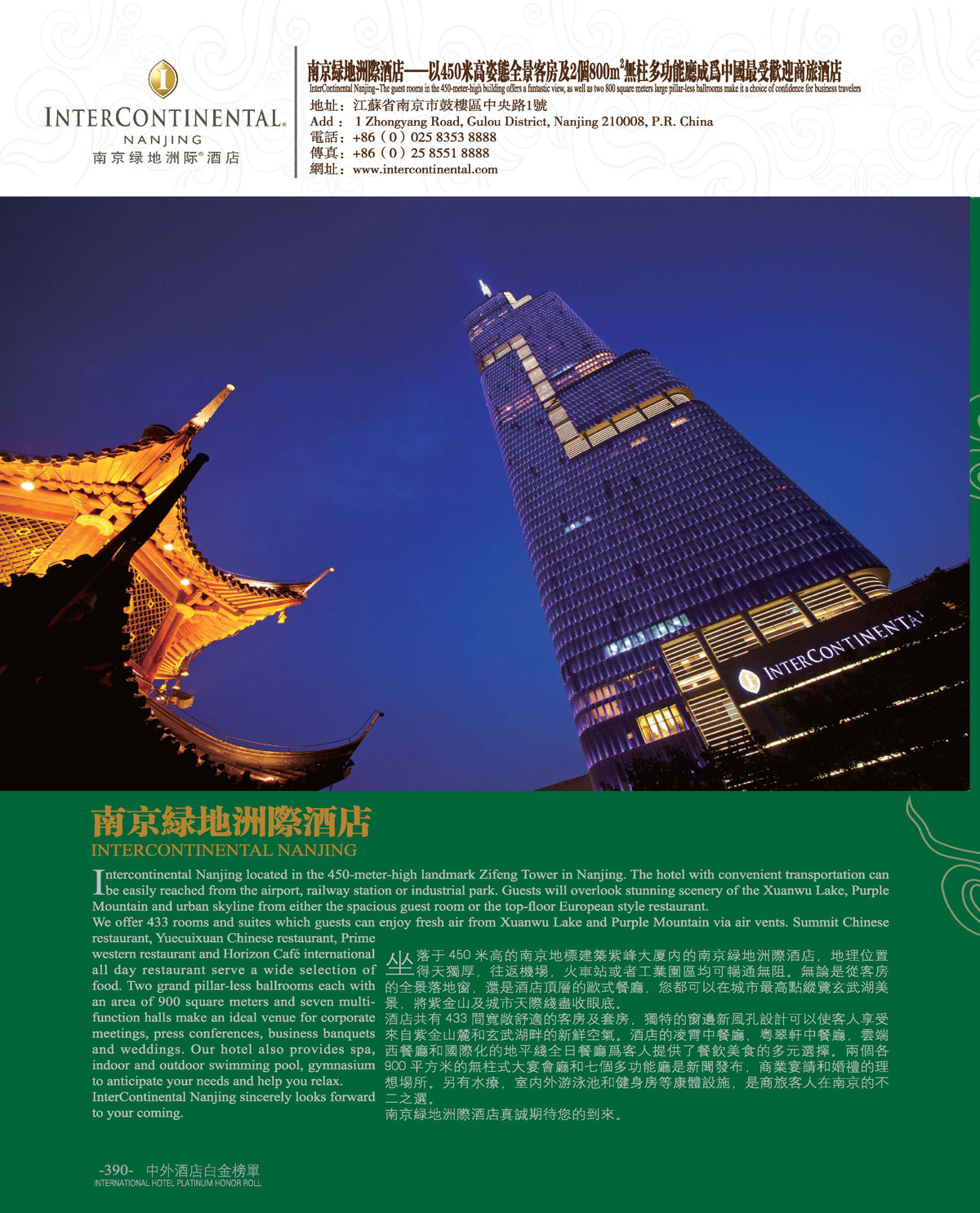 中外酒店十一届白金奖“中国最受欢迎商旅酒店”南京绿地洲际酒店!