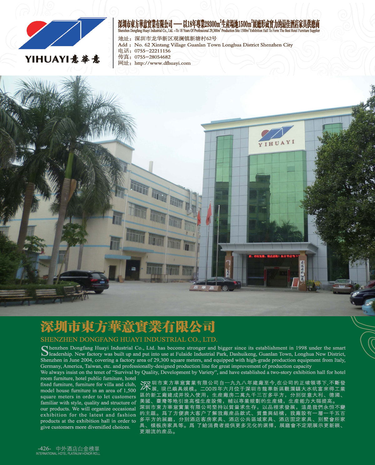 中外酒店十一届白金奖“最佳酒店家具供应商”深圳市东方华意实业有限公司!